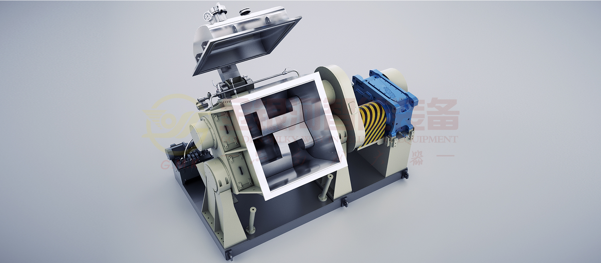 ●捏合機由捏合部分、機座部分、傳動係統、真空係統、液壓係統、電控係統等六大部分組成。