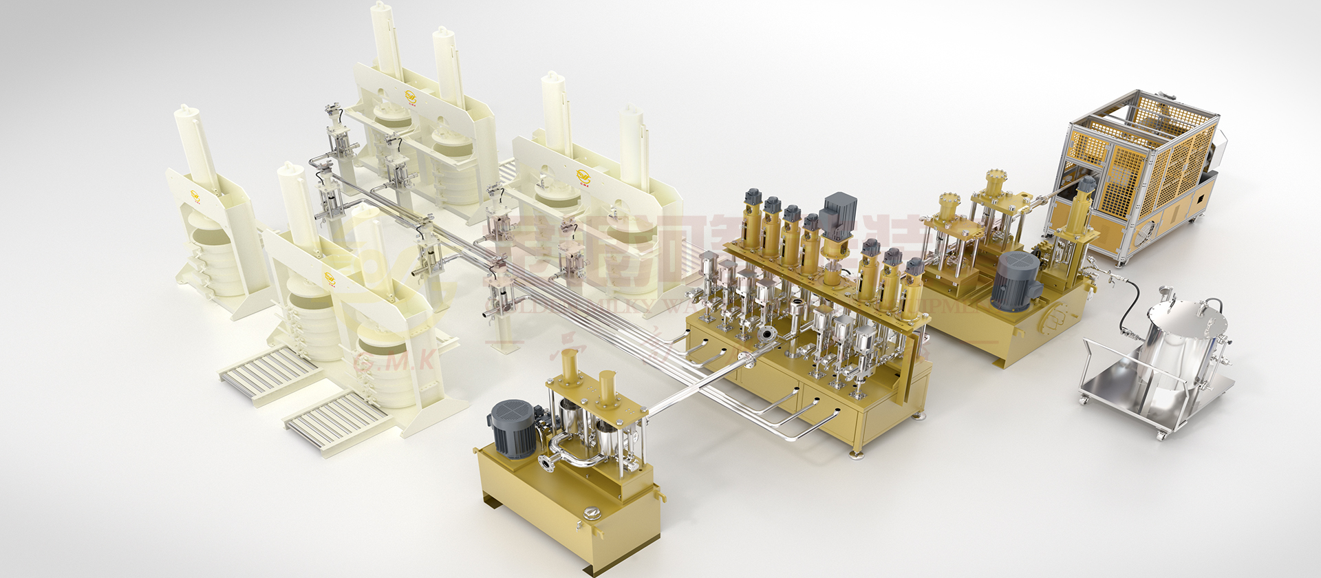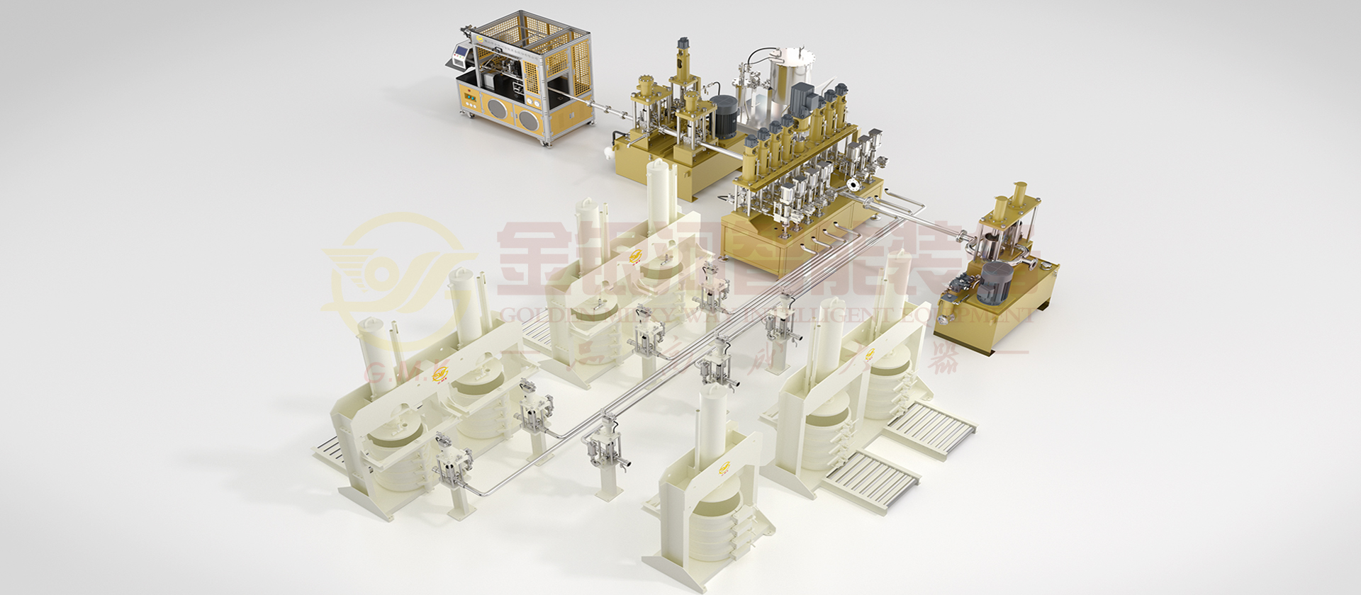 肟型智能調色線由以下主要部件組成,色漿供料係統、色漿伺服定量係統、基膠伺服定量係統、靜態混合芯、靜態混合增壓係統、液壓係統、集成電控係統、氣控係統、機架等部件組成。該機的特點如下: