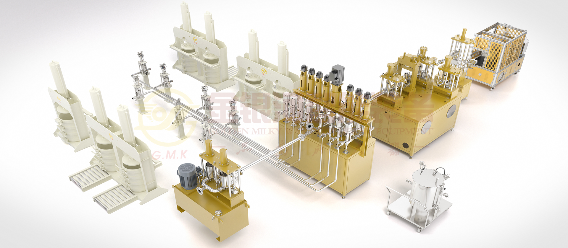 醇型智能調色線是一種新穎的靜態混合機,特別適合於批量小、顏色種類多的雜色膠的連續化生產。它由色漿供料係統、色漿伺服定量係統、基膠伺服定量係統、靜態混合芯、靜態混合增壓係統、循環係統、脫泡係統、液壓係統、集成電控係統、氣控係統、機架等部件組成,其中伺服定量係統、靜態增壓混合器、脫泡係統是整套設備的關鍵部件,也是保證產品質量穩定、均勻、可靠的保障。