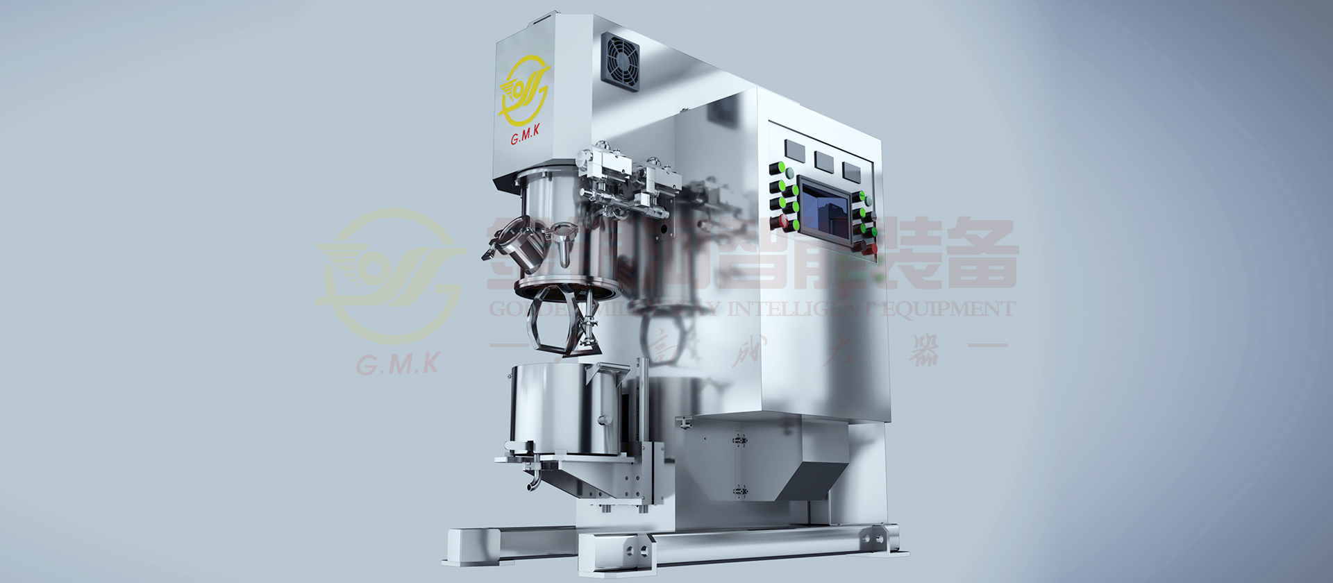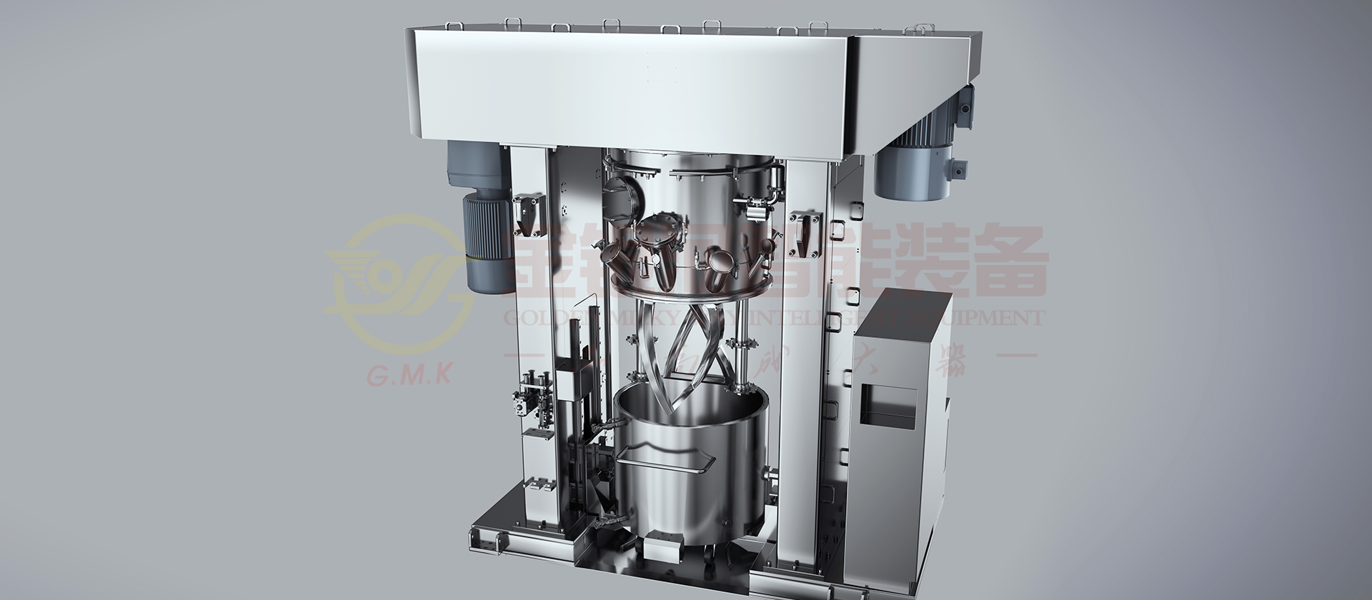 雙行星動力混合機是結合了傳統雙行星攪拌機和高速分散機的原理,組成的一種高效的新機型,目前在新能源領域有著廣泛的應用。 我司針對鋰電池、電容漿料特性,在原行星式動力攪拌機的基礎上,開發了具有高轉速,大扭矩的增強型動力混合機,適用於幹混、濕混工藝製備鋰電正負極漿料。在設計過程中,我司充分考慮了攪拌器的合理轉速、攪拌功率、分散線速度及合理的麻花槳形,減少高粘稠物料的阻力和桶內湍流強度的分布等因素,設計出更高效、更穩定的雙行星動力混合機,可處理高黏度的漿料。